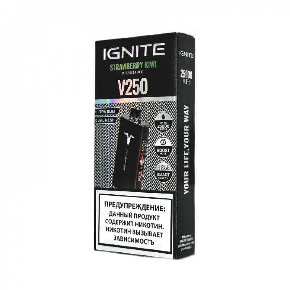 Электронная сигарета Ignite V250 Black 25000 - Strawberry Kiwi (Клубника киви) - купить в Корсакове