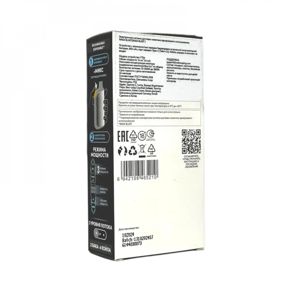 Технические характеристики WAKA BLAST 38000 Hard - Черника малина + лед микс