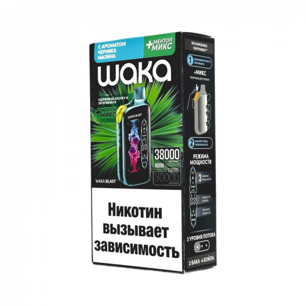 WAKA BLAST 38000 Hard - Черника малина + ментол микс - купить в Корсакове